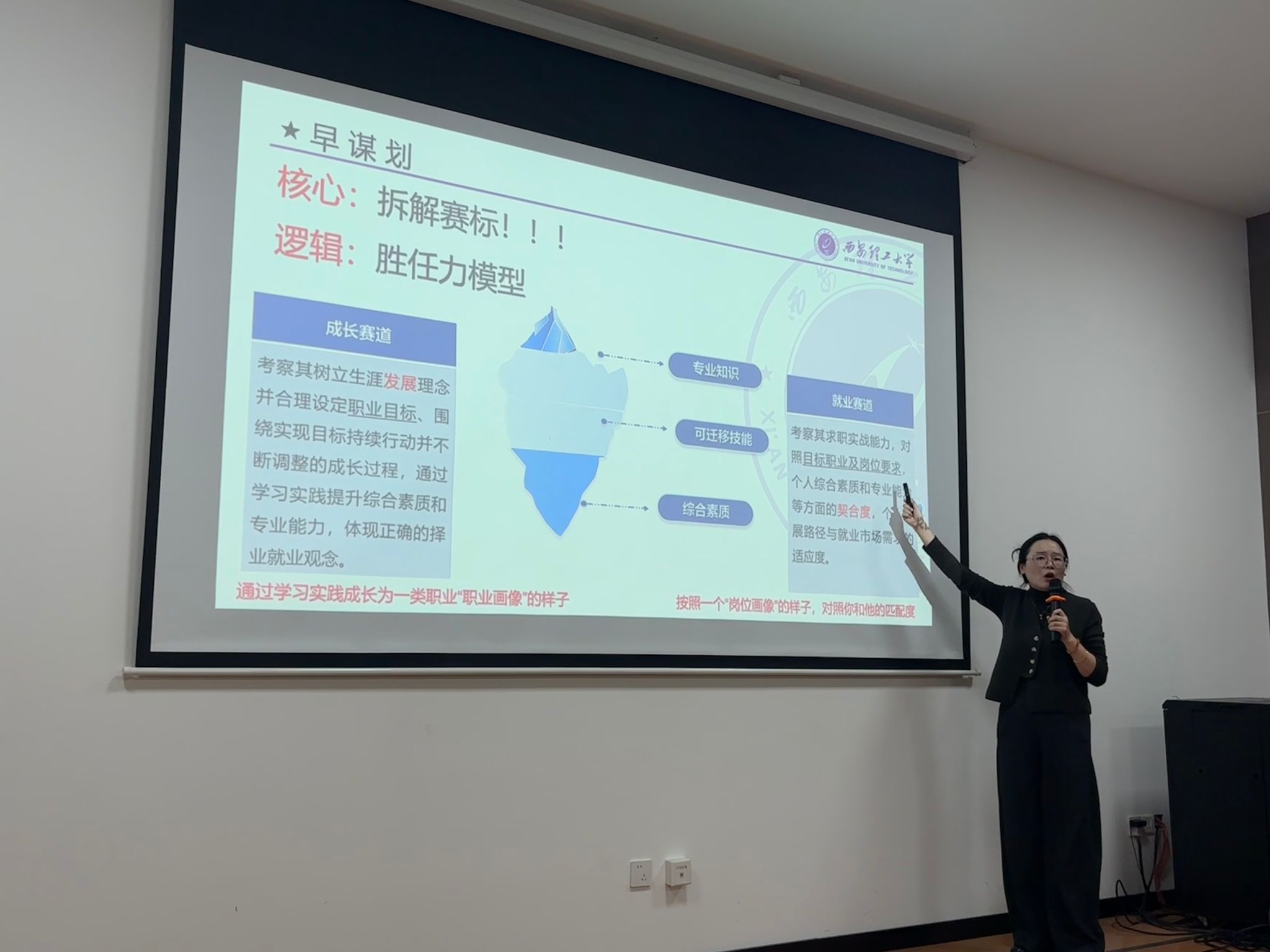 培训伊始,李萍老师结合自身经历,强调职业规划大赛对锤炼学生职业素养、推动精准就业的重要性,指出赛事指导是助力学生明晰职业方向、实现成长的关键。培训聚焦备赛全流程,兼顾政策高度与校情适配度,系统讲解就业赛道与成长赛道备赛要点。李萍老师结合两类赛道的定位差异,分别提炼国赛评分核心。她特别提醒辅导员,需紧扣国家政策与行业趋势,结合学校人才培养特色和学生专业优势,针对不同赛道精准定位,既要突出就业赛道的实践适配性,也要彰显成长赛道的潜力发展性,全面提升作品适配度。针对选手挖掘难题,李萍老师结合两类赛道特点,提出建立“低年级培育、高年级突破”梯队模式,通过日常走访、班级调研等挖掘适配人才:就业赛道可重点关注有明确职业目标、丰富实习实践经历的学生,成长赛道则侧重发掘有清晰成长轨迹、较强学习能力及突出品格特质的学生。同时结合学校学科特点,聚焦理工科技术转化、文科综合服务等优势,为不同赛道选手匹配对应资源,助力选手找准赛道定位,实现赛道精准适配。备赛内容梳理上,李萍老师针对两类赛道构建差异化与共性兼具的指导框架,强调杜绝内容空泛同质化。
